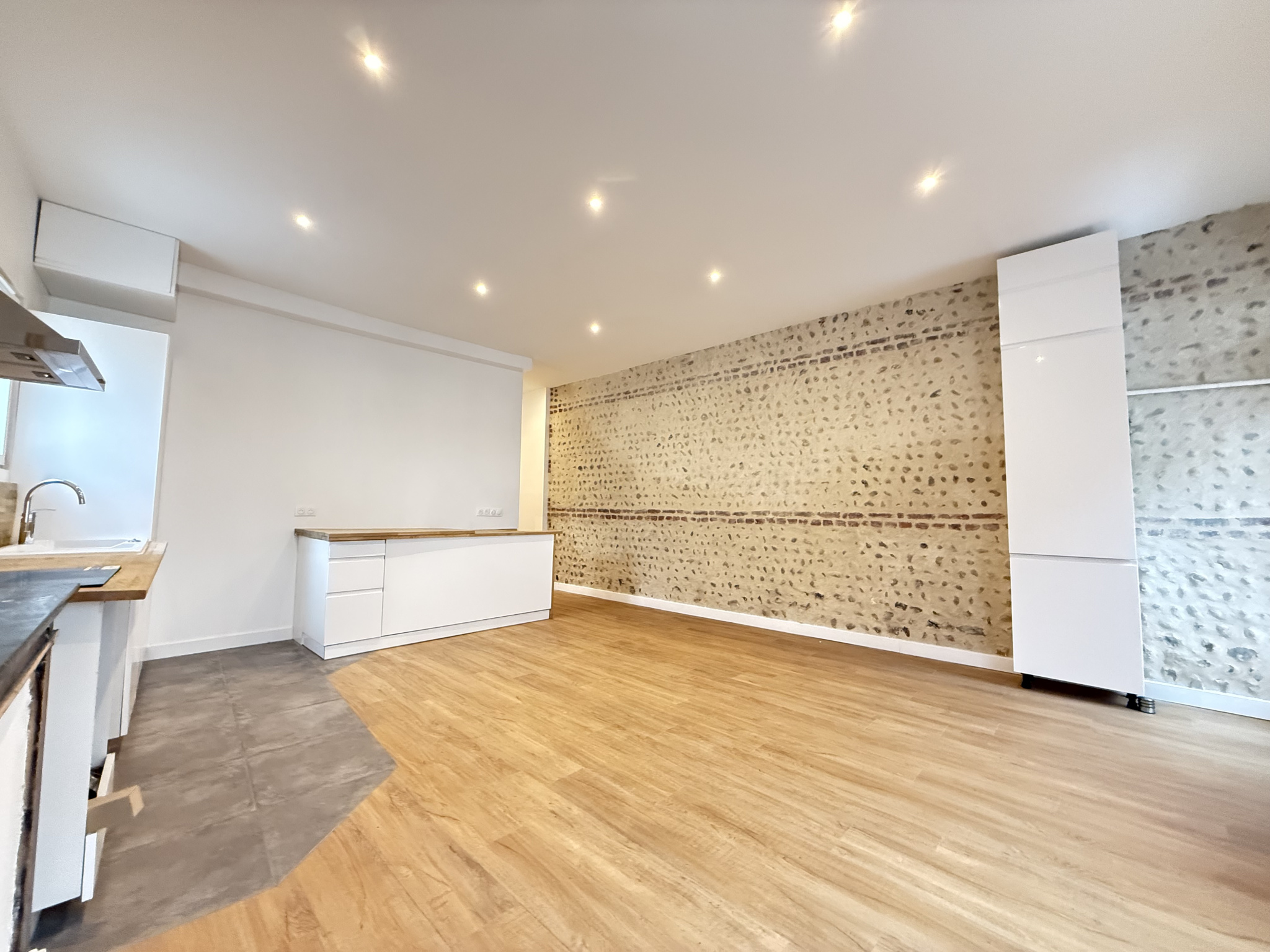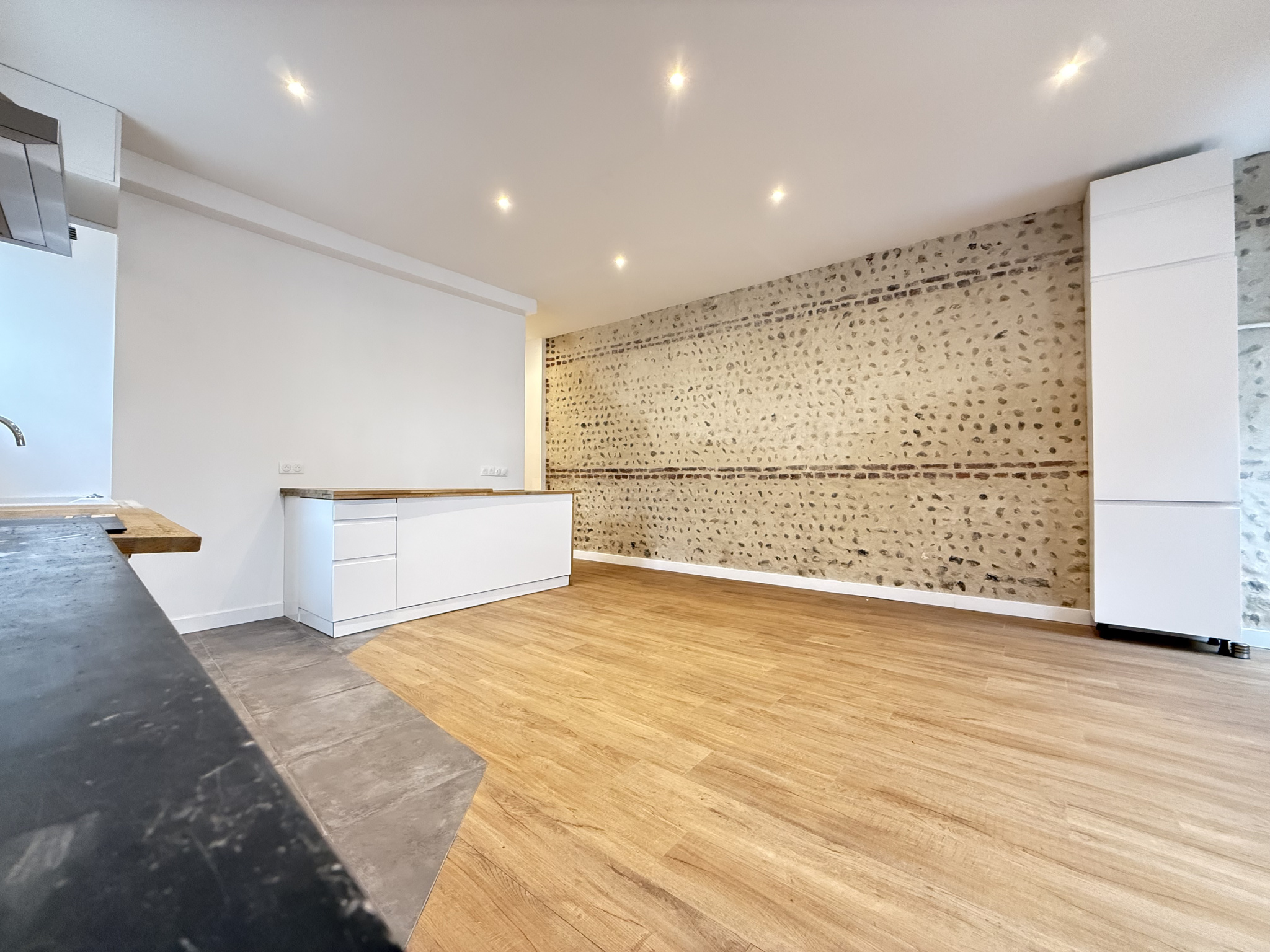 Il se compose d’un séjour lumineux avec cuisine ouverte équipée, 2 chambres confortables et une salle d’eau moderne. Depuis la cuisine, un escalier descend vers une grande cave de 24,6 m², parfaite pour le rangement ou un projet personnalisé.